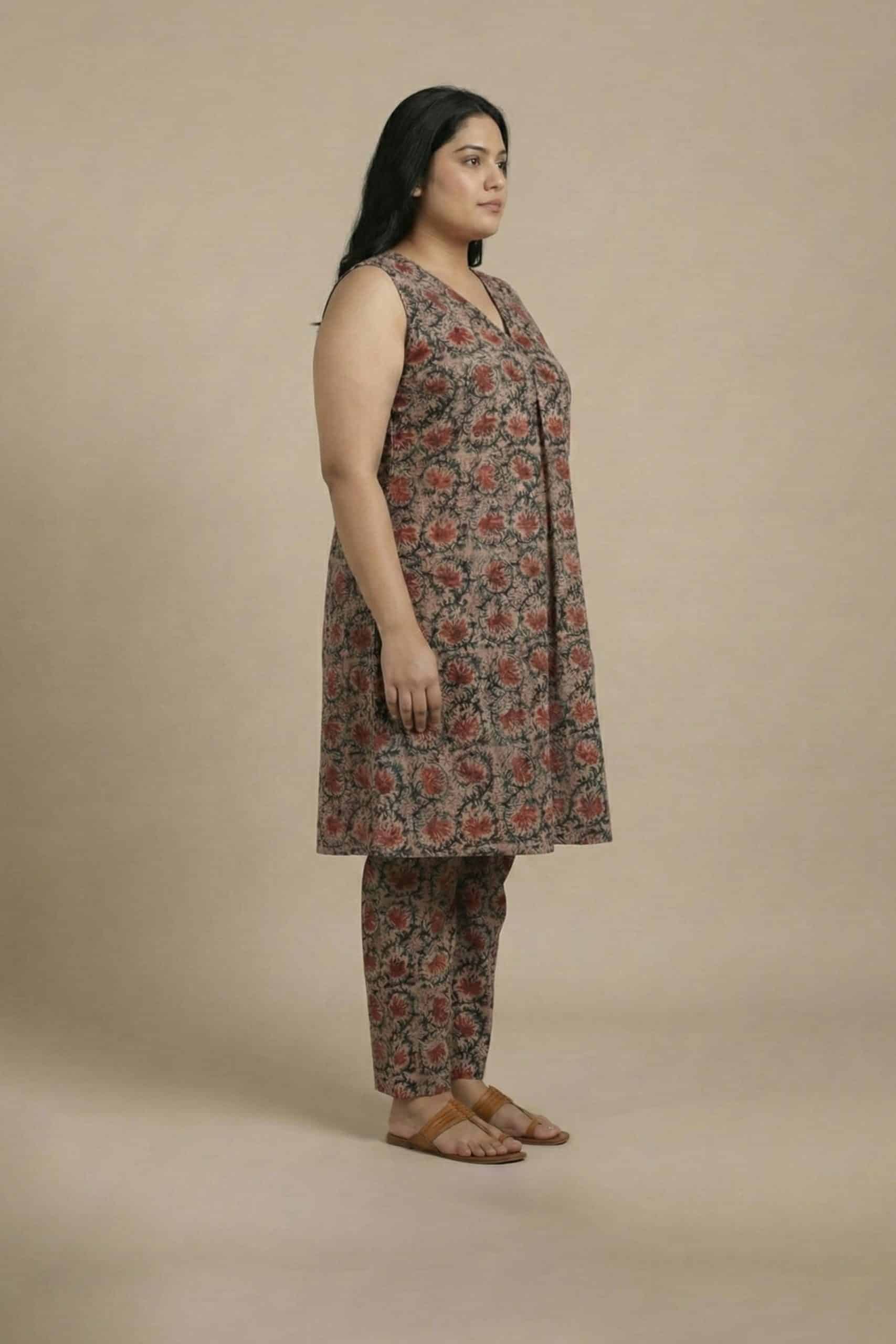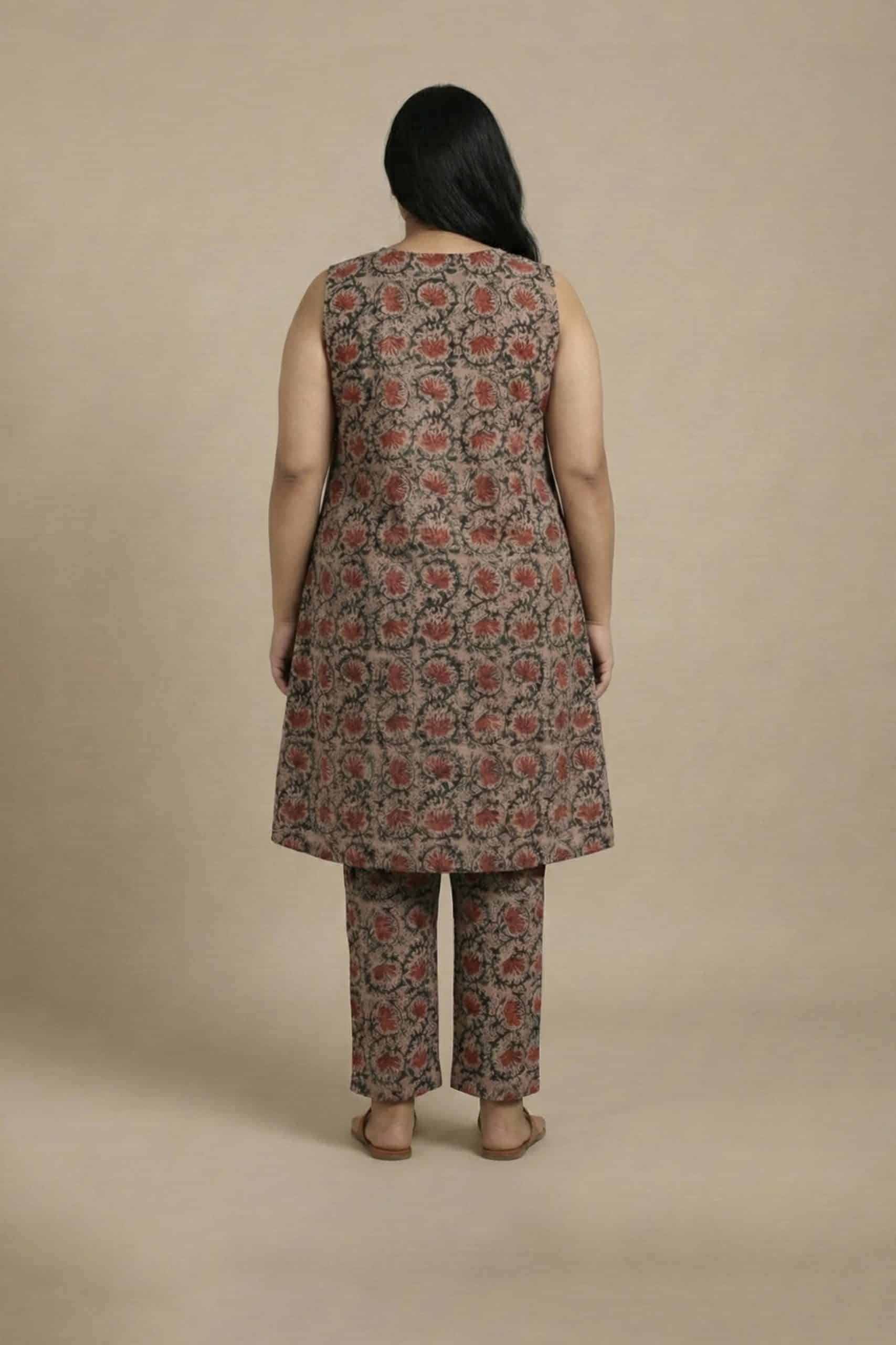 The Paisley Print Kurta Set brings together timeless motifs and everyday comfort in a beautifully balanced silhouette. Crafted in soft, breathable cotton, this sleeveless kurta features delicate paisley patterns inspired by traditional Indian design. The straight-cut kurta falls gracefully and pairs perfectly with matching printed pants, creating a coordinated look that feels both classic and modern.
